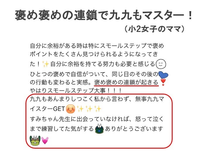 子育て中のママならどなたでもおススメですが、親子関係や子どもの学習状況に悩みのある方の効果が大きいと思います。
