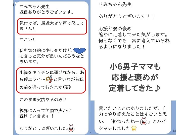 大きな声で怒るようなことが無く、考えてから声をかけれるようになってきました。